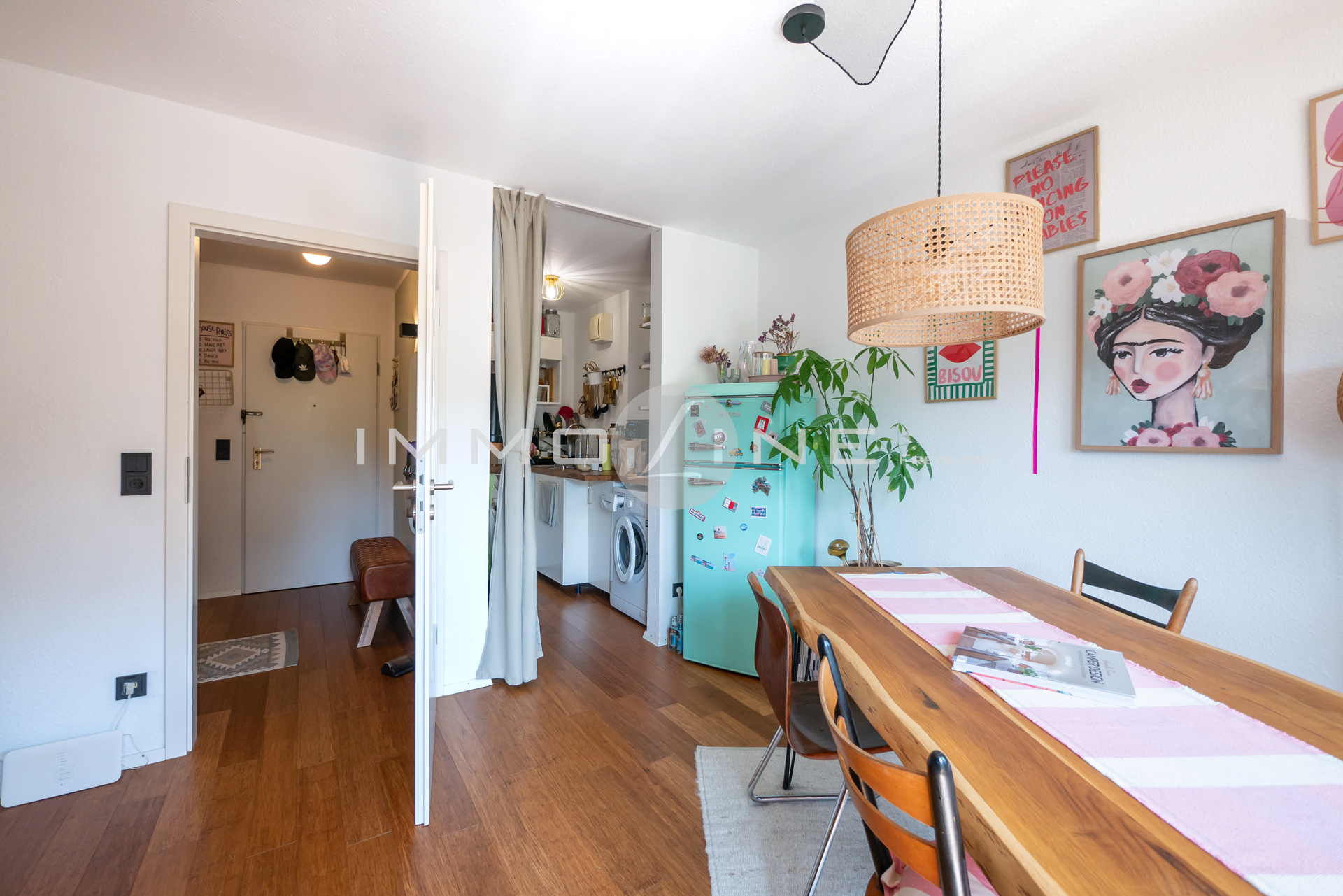 Diese lichtdurchflutete 2-Zimmer-Maisonettewohnung im 2. Ober- und Dachgeschoss eines 1988 erbauten, altersgemäß gepflegten Mehrfamilienhauses mit 18 Wohneinheiten verbindet gemütliches Wohnambiente mit moderner Ausstattung, und dies in einer attraktiven Wohnlage mit viel Grün und bester Infrastruktur in der direkten Umgebung. Bereits beim Betreten der Wohnung spürt man die besondere Wohnqualität der im Jahr 2015 umfassend modernisierten Wohnung: eine charmante Raumaufteilung, helle Fensterfronten und gut ausgewählte Ausstattungsdetails verleihen der Wohnung ein einladendes, wohnliches Flair. Die Maisonette-Bauweise verleiht der Wohnung eine offene und lebendige Atmosphäre. Während im unteren Bereich Kochen, Wohnen und Genießen im Mittelpunkt stehen, bietet die obere Ebene ein privates Refugium zum Entspannen. Dieser Grundriss macht die Wohnung zu etwas ganz Besonderem und hebt sie von klassischen 2-Zimmer-Wohnungen ab. Hier fühlen sich Singles wie Paare gleichermaßen wohl. Wohnen und Leben im 2. Obergeschoss: Im unteren Bereich der Wohnung spielt sich das Leben ab. Der offene Wohnbereich empfängt Sie hell und freundlich – ein Ort zum Ankommen und Wohlfühlen. Die Küche ist offen angeschlossen, dabei jedoch in einer großzügigen Nische angeordnet, sodass sie sich harmonisch einfügt, ohne den Wohnraum zu dominieren. Ein echtes Highlight ist der Balkon mit Blick ins Grüne: Hier können Sie den Feierabend genießen, in Ruhe frühstücken oder einfach die Seele baumeln lassen. Rückzug unterm Dach: Über die massiv ausgestaltetet Treppe geht es hinauf in das Dachgeschoss, wo die Wohnung ihren behaglichen Charme entfaltet. Die kleine Galerie eignet sich ggfs auch wunderbar als Arbeitsplatz oder gemütliche Leseecke. Gleich daneben befindet sich das moderne Tageslichtbad, das 2015 neu gestaltet wurde – hell, freundlich und mit Badewanne ausgestattet. Das Schlafzimmer unter den Dachschrägen mit den neuen Dachflächenfenstern wirkt behaglich und geborgen – ein perfekter Rückzugsort. Modernisiert mit Liebe zum Detail: Die Wohnung wurde 2015 umfassend modernisiert und präsentiert sich heute in zeitgemäßem Zustand: • neuer Parkettboden in Wohn-, Schlaf- und Flurbereichen • modernes Tageslichtbad mit Badewanne • Pantry-Küche in zeitgemäßem Design • neue Dachflächenfenster für mehr Licht und Energieeffizienz • frische Wände und gepflegte Raufasertapeten (bereits 2008 erneuert) Flexibilität für Eigennutzer und Anleger: Die Wohnung ist aktuell vermietet, kann jedoch nach Absprache zeitnah für Eigennutzer frei werden – eine rechtssichere Mietaufhebungsvereinbarung ermöglicht bei Bedarf einen unkomplizierten Übergang. Fazit: Ob als erstes eigenes Zuhause, stilvolle Stadtwohnung oder wertstabile Kapitalanlage – diese Maisonette überzeugt durch Charme, Licht und Lage. Hier kaufen Sie nicht nur Quadratmeter, sondern ein Stück Lebensqualität in Freiburg-Zähringen. Ergänzender Hinweis für Anleger: Der Grundbesitz (Wohnung nebst einem PKW-Stellplatz in der Tiefgarage) ist solide vermietet und erwirtschaftet derzeit eine jährliche Nettokaltmiete in Höhe von insgesamt 7.200 ,– Euro. Hierbei entfallen 6.780,– Euro auf die Wohnungs- und 420,– Euro auf die PKW-Stellplatzmiete. Die nicht umlagefähigen jährlichen Betriebskosten für den Grundbesitz betragen derzeit (lt. aktuell gültigem Wirtschaftsplan) insgesamt 956,— Euro. Das einheitliche Mietverhältnis besteht seit dem 01.10.2021 und ist auf unbefristete Zeit geschlossen, eine Staffel- (§ 557 a BGB) oder Indexmiete (§ 557 b BGB) ist nicht vereinbart. Ein Mietanpassungsverlangen (im Sinne von § 558 ff BGB) wurde zuletzt im Dezember 2023 mit Wirkung zum 01.03.2024 gestellt. Hinweis zum Gesamtkaufpreis: Der Gesamtkaufpreis beträgt insgesamt 245.000 Euro. Hiervon entfallen insgesamt 15.000 Euro auf den PKW-Stellplatz in der Tiefgarage.